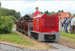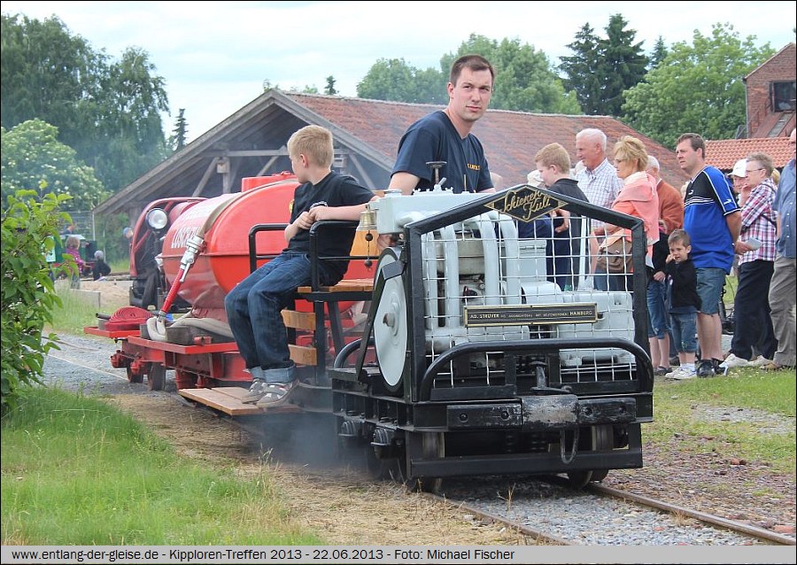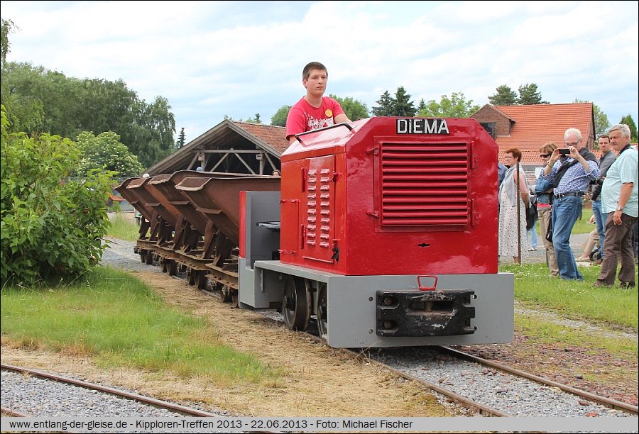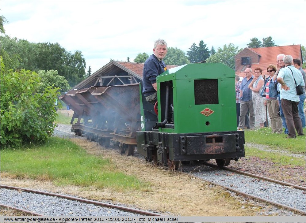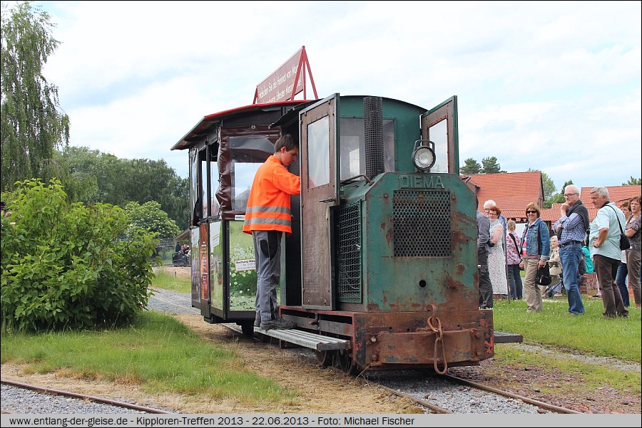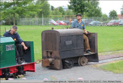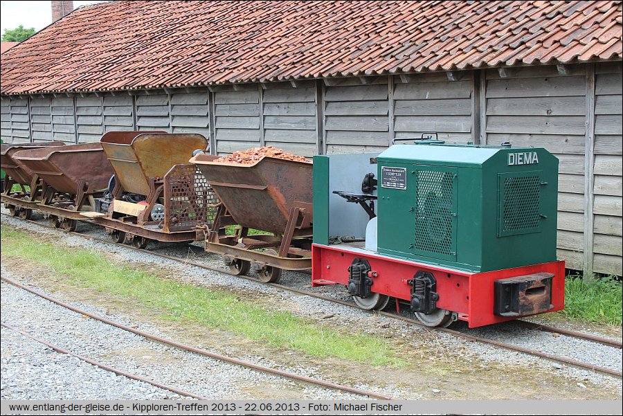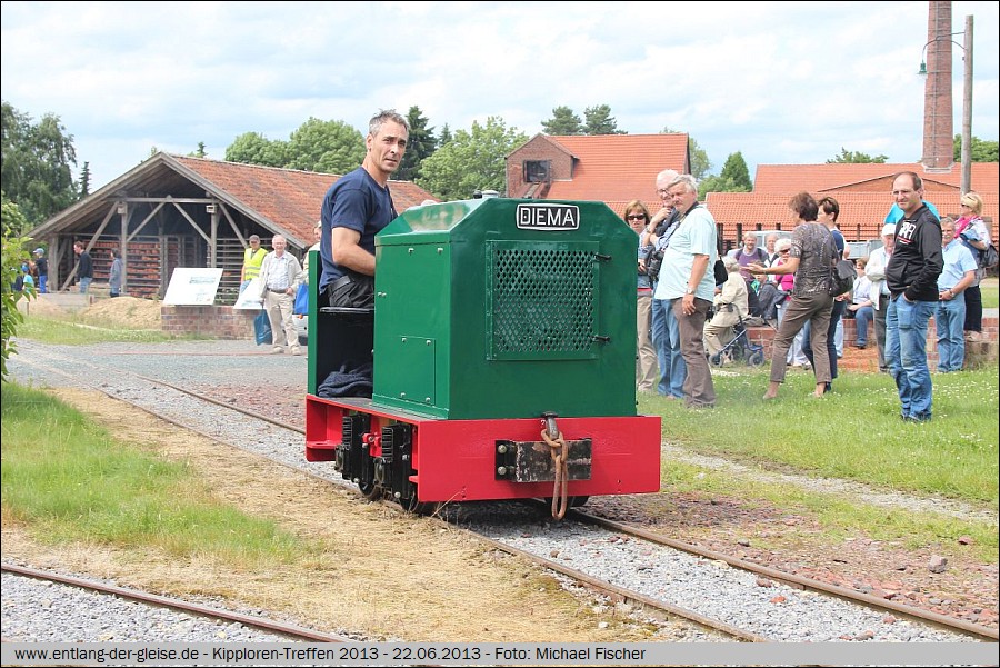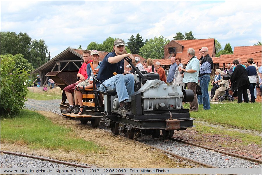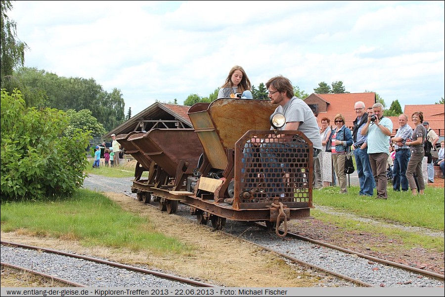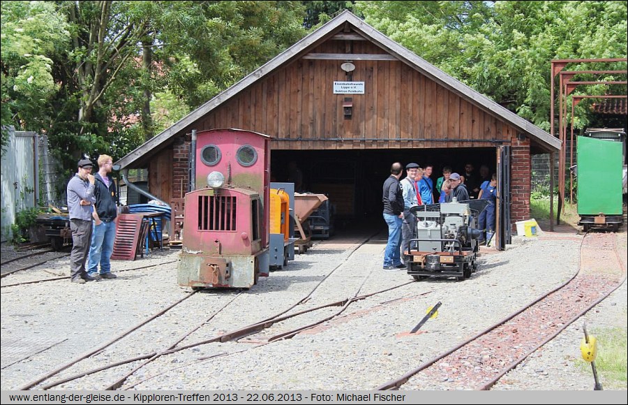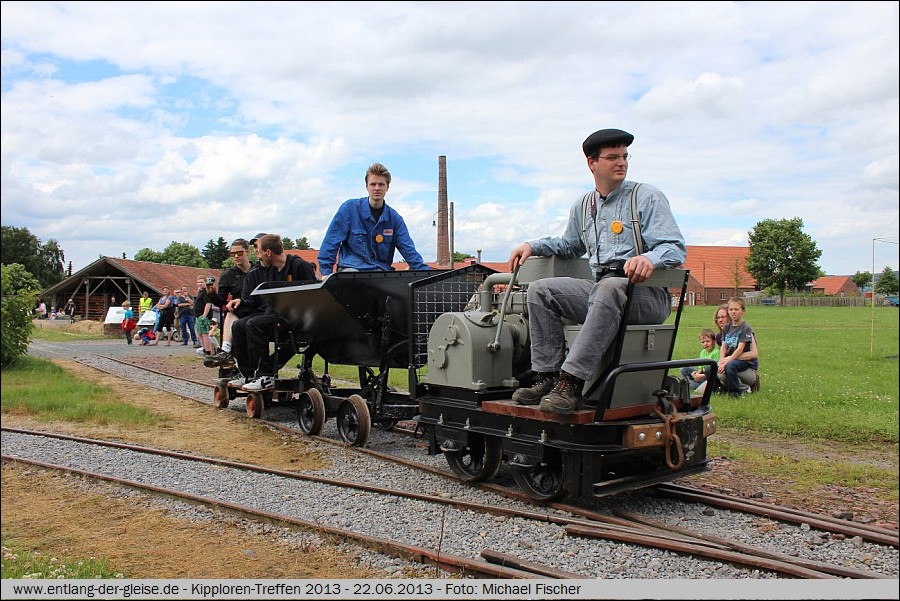 ihres fünften Treffens auszutauschen. Die noch betriebsfähige Ziegelei ist Teil des LWL-Industriemuseums - Westfälisches Landesmuseum für Industriekultur in Dortmund, dass an verschiedenen Orten Außenstellen hat, um interessierten Personen frühere Industrieanlagen zu zeigen. Seit 1996 kooperieren die Eisenbahnfreunde Lippe e.V. mit dem Museum und betreiben in der Ziegelei eine Feldbahn mit 600 mm Spurweite. Dargestellt wird der innerbetriebliche Einsatz der Feldbahn als Teil des Produktionsprozesses. Mehrmals im Jahr findet an den Öffnungstagen Feldbahnverkehr statt. Das Kipplore-Forum hat sich seit Jahren als Plattform für Feldbahnliebhaber im Internet etabliert. Restaurationsberichte sind ebenso ausführlich vertreten wie Exkursionsberichte, Informationen aus Vereinen und Privatsammlungen, Modellbau und viele weitere Rubriken. Die folgende Bildergalerie zeigt als Schwerpunkt die am 22.06.2013 eingesetzten Fahrzeuge. Neben den Lokomotiven der Eisenbahnfreunde Lippe hatten viele Kipploren-Teilnehmer ihre eigenen Fahrzeuge mitgebracht, um die Gleise des Museums unter die Räder zu nehmen. Ein Anspruch auf Vollständigkeit besteht nicht, denn es waren noch weitere Loks unterwegs. Hinweis: Alle Aufnahmen können durch anklicken vergrößert werden. |