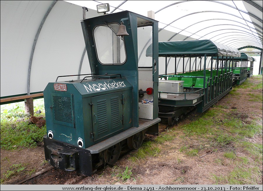 mit Ausahme der jüngsten Maschine, die von Schöma gebaut wurde, ausschließlich aus Diema-Loks. Da keine Steigungen zu bewältigen sind,