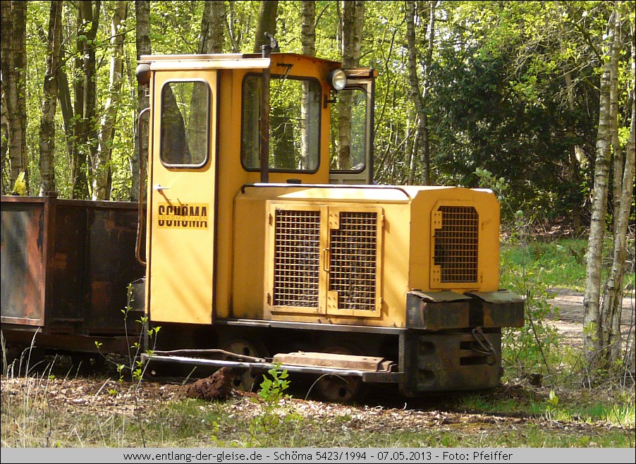einsatzbereiten Schöma-Loks und zwei abgestellten Maschinen