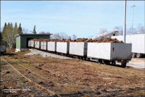 Feldbahn auf Lkw umgeladen, die ihn zur Weiterverarbeitung