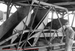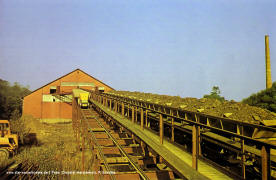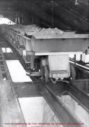 3.8 3.9 Der Abwurfmechanismus: Über Zwangsführungen werden die Transportgefäße angehoben und entleeren automatisch den Ton auf die darunter liegende Halde.