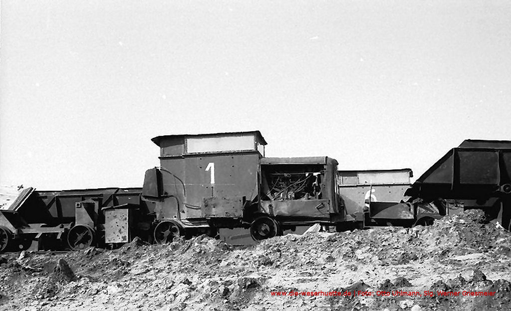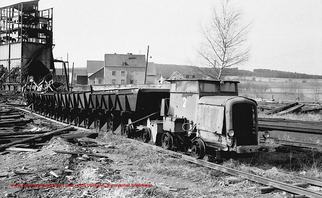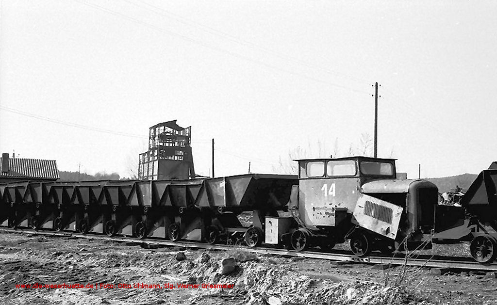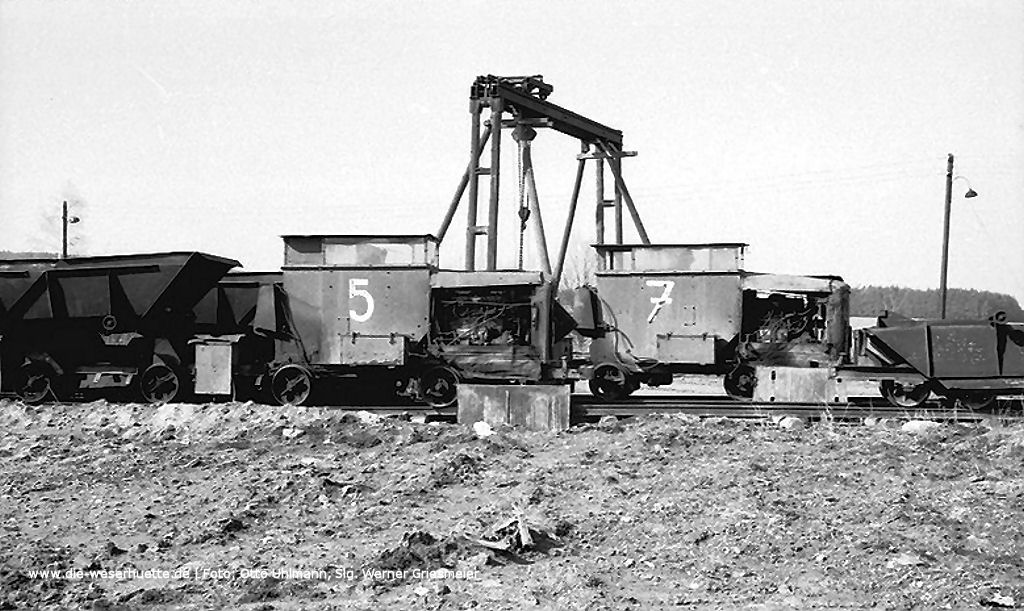 Die Aufnahmen stammen aus der Zeit um 1968, als die Bahn bereits stillgelegt war. Die Braunkohleförderung war am 31.12.1966 wegen Erschöpfung der Vorkommen eingestellt worden.