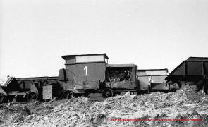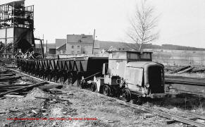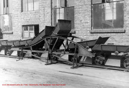 2.3 Bei dieser Bahn, deren Einsatzort leider nicht übermittelt ist, kamen Lokomotiven zum Einsatz, die bereits ein leichtes Dach hatten. Bemerkenswert sind hier die trichterförmigen Fördergefäße, die ebenfalls eine kontinuierliche Beladung erlauben sollten.