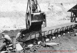 Beladung mit einem Menck-Seilbagger. Später modifizierte die Zeche die