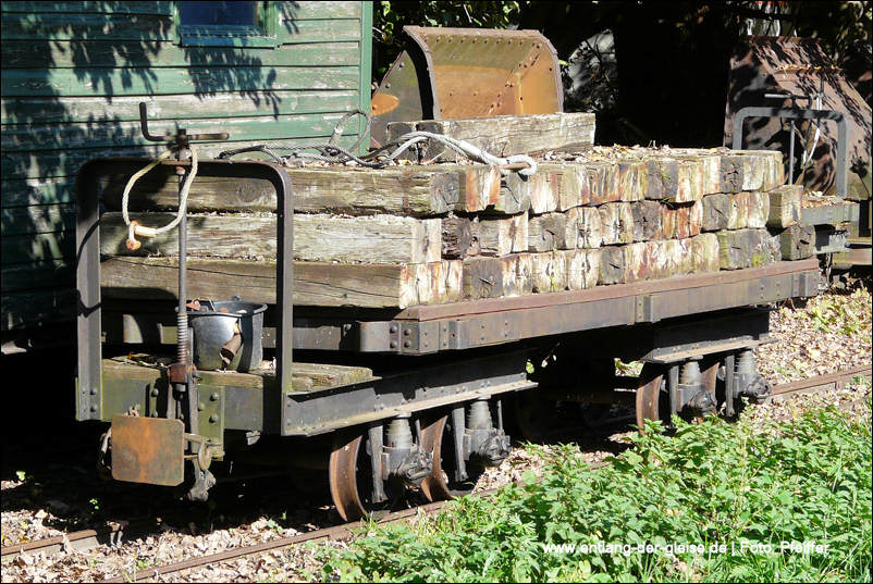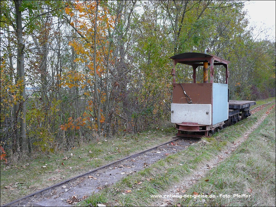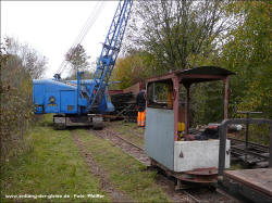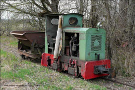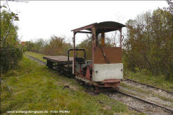 Die beiden O&K Lokomotiven haben den Abbau der Bahn überlebt und befinden sich seit 2011 bei einem privaten Liebhaber. Dort entstanden die Bilder im April 2012: Links die 25211 und rechts im Schuppen die 25267. Auch die Brigadewagen konnten an verschiedene Feldbahn-Sammlungen veräußert werden. Hier ein HaWa-Wagen von 1918. | ||||||||||||||||||||||||