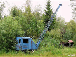 Feldbahn geladen. Seit der Stilllegung wartet der Bagger auf eine