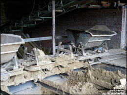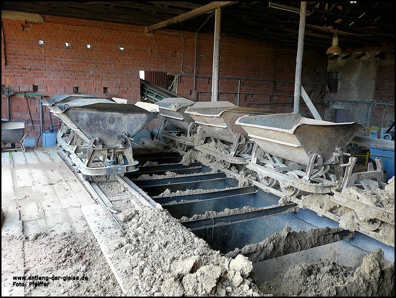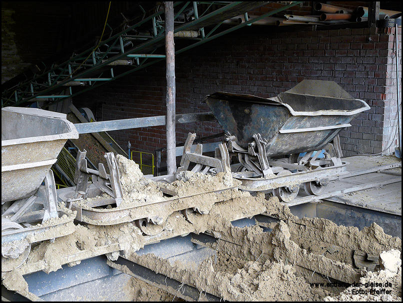 Entlade-Halle wurde der Ton per Radlader in den Bunker gekippt. Die Bilder zeigen den Zustand der Feldbahn an diesem