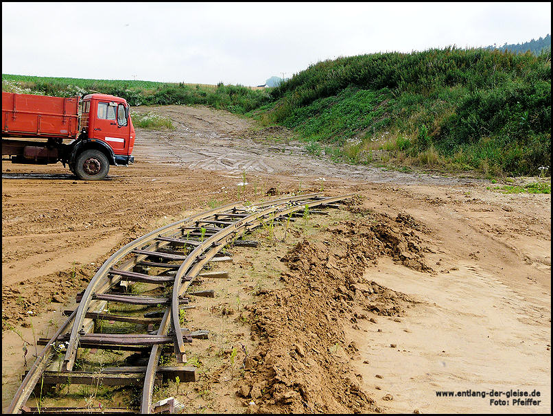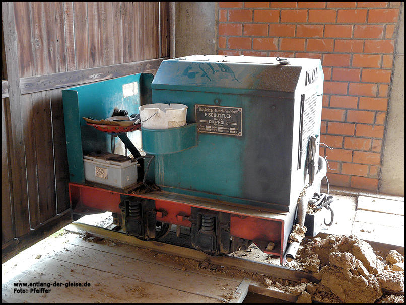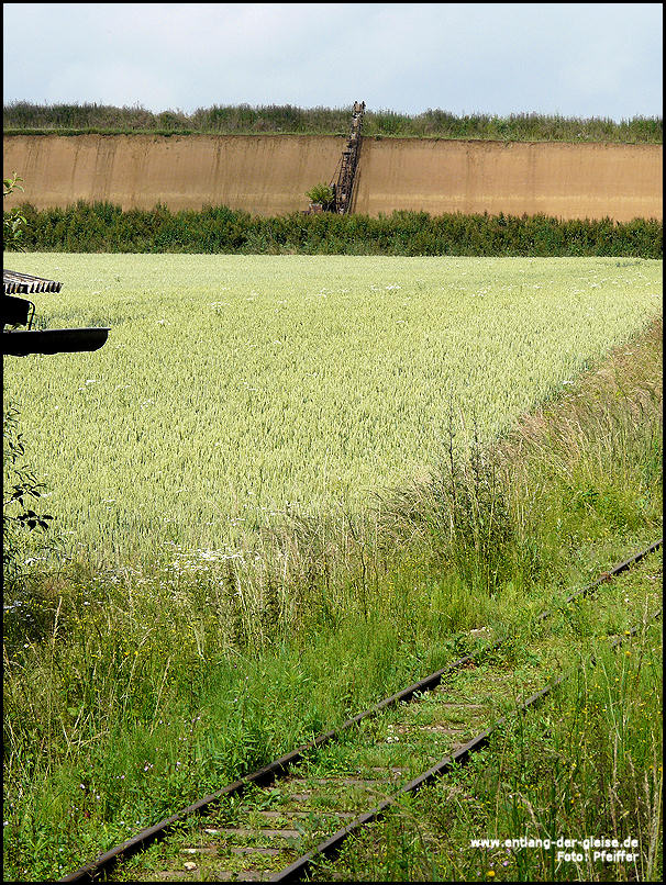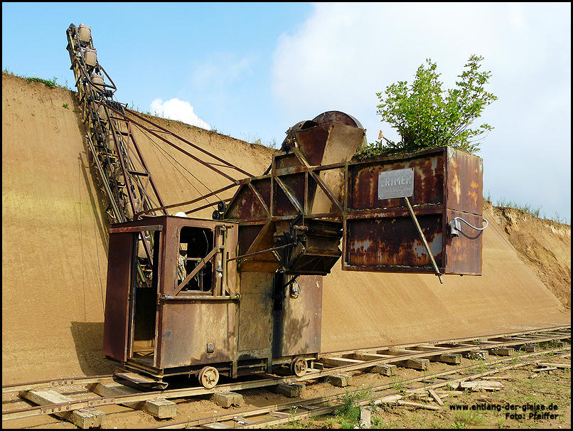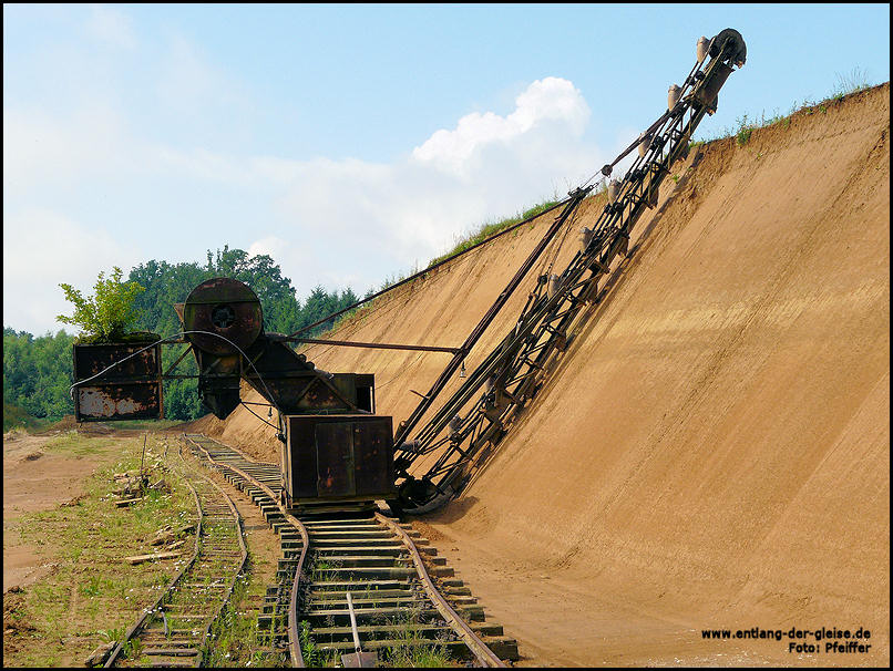 Tag. Ein Besuch im Frühjahr 2012 zeigte die Bahn wieder in Betrieb. Leider wurden der Bahnbetrieb und auch der Einsatz des Eimerkettenbaggers Anfang 2013 eingestellt. |