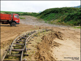 der Einfahrt zur Grube war das 600 mm-Gleis unterbrochen, in der