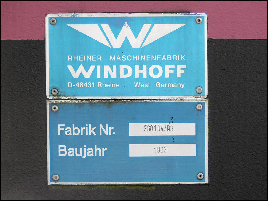 Maschine verrät durch ihre Aufschriften einige Daten: