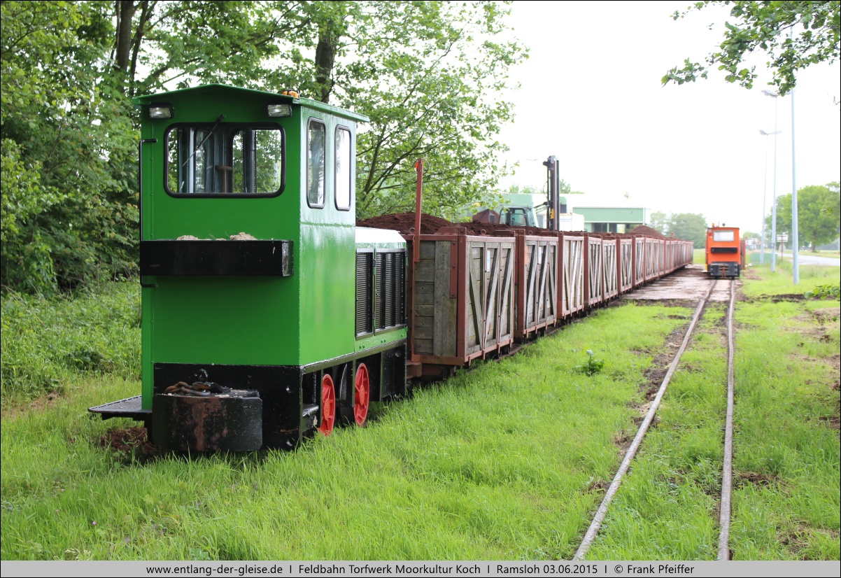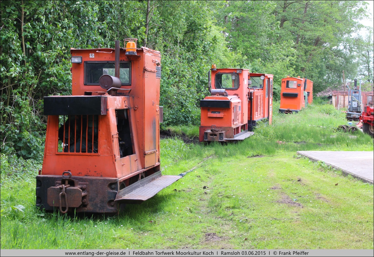 Am 03.06.2015 konnten mehrere Züge am Torfwerk und einige an der Werkstatt abgestellte Lokomotiven aufgenommen werden. |