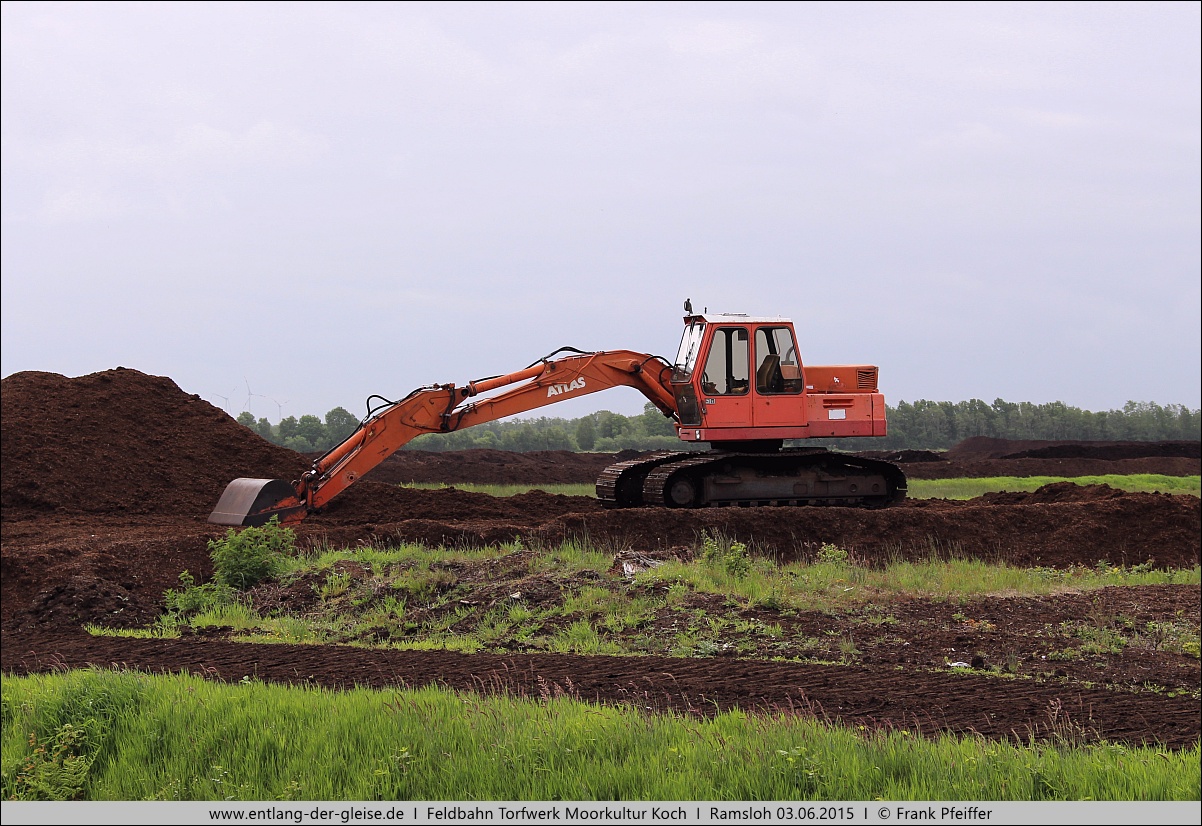 4064/1975. 2.11 Das Unternehmen hat längere Zeit Atlas-Bagger eingesetzt. Direkt gegenüber dem Werk steht noch ein mindestens 25 Jahre altes Exemplar. 2.12 Weiterer Torf rollt an. Es führt wieder Lok 22 (Schöma 6298/2008, CHL-40G). |