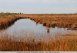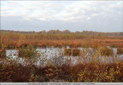 abgestellt ist. 2.2 Die wieder vernässten ehemaligen Abbaugebiete bieten im Herbst eine besondere Farbenpracht. Hier kann neues Moor entstehen. 2.3 Ein breiterer Graben hat einen Moorteich entstehen lassen. |