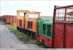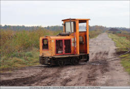 seit einiger Zeit auf einem Nebengleis und wird nicht benötigt. 2.26 Im Torfwerk ist dagegen Lok 7, die Schöma 4348/1979 vom seltenen Typ CHL-16G als Rangierlok zu finden. 2.27 Und auch Diema 2993/1968 vom Typ DL 6/3 wird als Rangierlok genutzt. Es handelt sich um eine Variante der DL 6 mit kurzem Achsstand. |