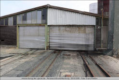 den Lokschuppen führte, dessen Holztor hinten erkennbar ist.