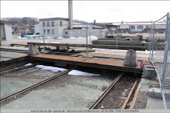 3 Die Schiebebühne verbindet die drei Gleise. 2019 ist sie