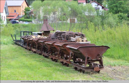 eine Lore mit Holz auf eines der beiden langen Abstellgleise