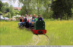 Betriebsmittelpunkt der Bahn am Festplatz der Gemeinde.