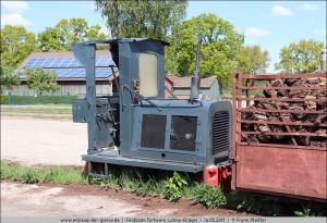 | 1.1 Schöma 2658/1963, eine KDL 10, ist am 23.06.2011 dafür verantwortlich, die entladenen Loren aus der Halle zu ziehen. |