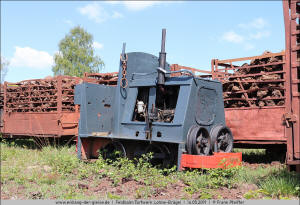 es, die beladenen Züge in die Entladeanlage im Gebäude zu schieben. 3.5 Dagegen haben diese Torfloren wohl ausgedient und warten auf dem "Friedhof" des Werks auf den Schrotthändler. 3.6 Die Werkstatt ist auch "aus der Zeit gefallen" und strahlt den Charme vergangener Jahrzehnte aus. |