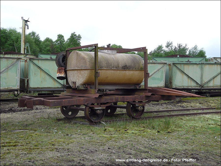 Maschinen keine Raritäten. 21 Die Tanklore sieht zwar marode aus, könnte aber noch zum Einsatz zu kommen. Man beachte die Blattfedern! |