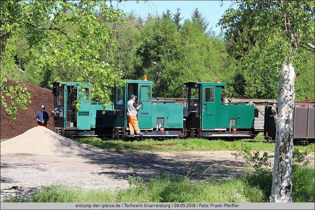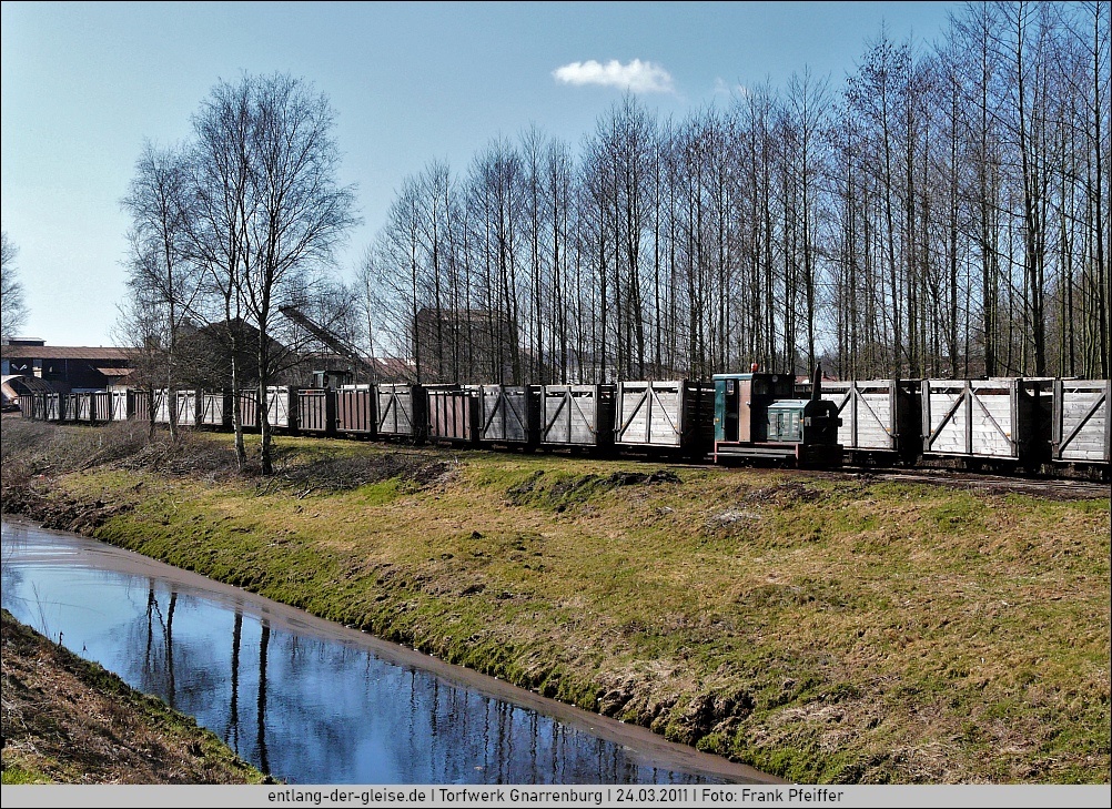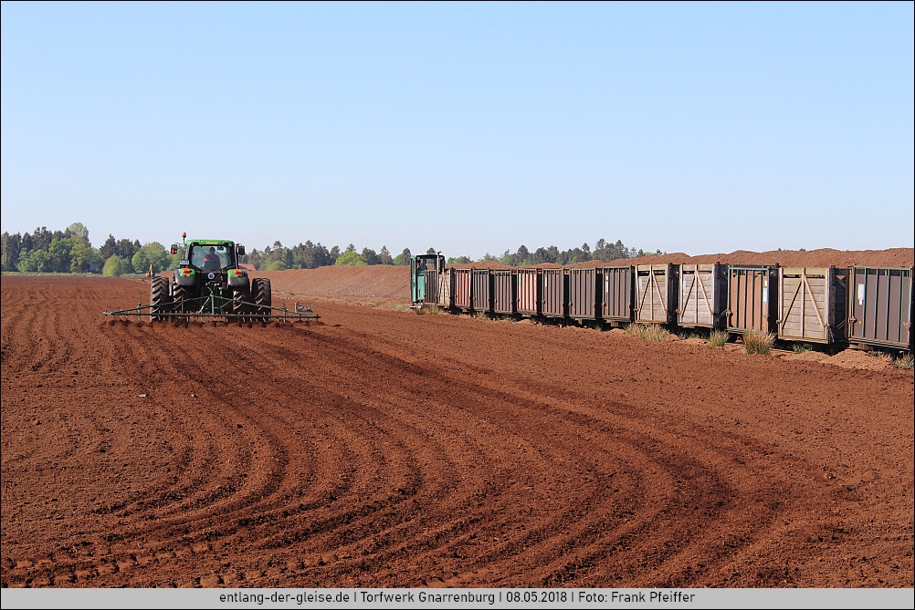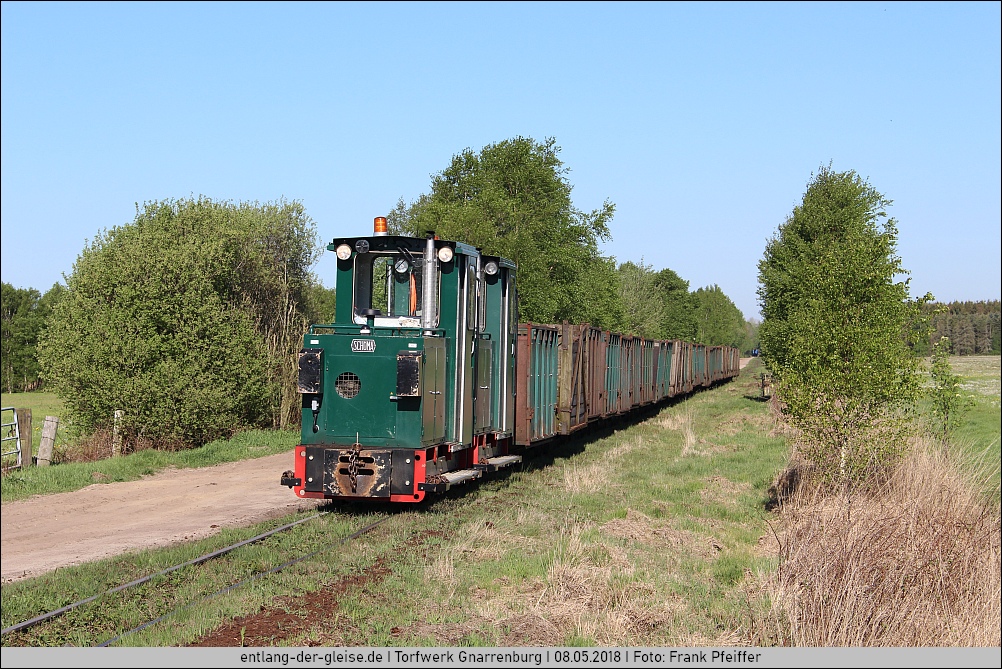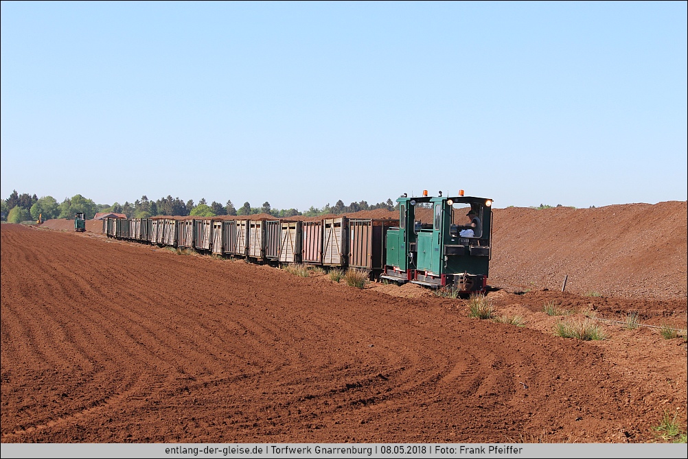 "Torf- und Humuswerk Gnarrenburg GmbH" betreibt. Genutzt werden mehrere unterschiedlich große Abbauflächen, die nur teilweise mit der Feldbahn erschlossen sind. 2018 wurde die Bahn ausgehend vom Torfwerk ins Augustendorfer Moor betrieben. Außerdem wurde am Standort Bülstedt-Steinfeld gefahren, während der Restbetrieb im Huvenhoopsmoor nur noch sporadisch statt fand. Eine lange Zeit zwischen dem Stammwerk und dem Huvenhoopsmoor bestehende, mehrere Kilometer lange Verbindungsstrecke wurde 2013 abgebaut. Der Betrieb in Hagen im Bremischen wurde schon 2012 eingestellt. Die hier gezeigten Aufnamen entstanden hauptsächlich 2018, einige aus dem Jahr 2011 sind aber auch vorhanden. Hinweise: Im Moor wurden nur öffentlich begehbare Wege genutzt. Im Betriebsteil Huvenhoopsmoor wurde das Fotografieren mit den Mitarbeitern abgestimmt. Alle kleinen Bilder können durch Anklicken vergrößert werden. |
