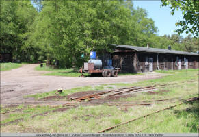 des Feldbahnbetriebs abwickeln. Im Hintergrund steht eine fahrbare