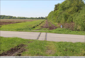 dieser Wagen gebaut wurde, kann hier leider nicht beantwortet werden. 3.17 Hier kam die Strecke vom Huvenhoopsmoor aus dem Wäldchen, überquerte die Straße Augustendorf - Glienstedt und führte zum Werk nach Gnarrenburg. 3.18 Abgebaut! Nur in der Straße liegt noch ein Stück Gleis. |