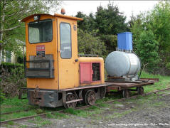 bezeichnet. 7 Ebenfalls modernisiert ist Lok 6, die Schöma 4458/1981, eine CHL-20G. Mit einer Kraftstofflore steht sie am 06.05.2012 im Torfwerk. |