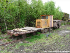 Bauart CDL-28. Ob sie noch eingesetzt wurde, war unklar. 10 Rangierlok an der Entladestelle im Werk ist die eigentümlich aussehende Lok 4. Sie stammt aus der Serie 2931-2933, ist wahrscheinlich die 2931 und war bis 1999 in Holland eingesetzt. Dort erhielt die Maschine auch die neue Motorhaube. |