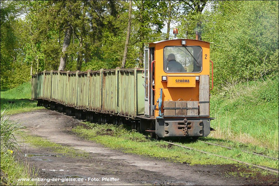 Die Lokomotiven stammten ausnahmslos von Schöma und boten eine Mischung aus modernisierten älteren und ziemlich neuen Loks. Die Übersicht ist HIER zu finden. |
