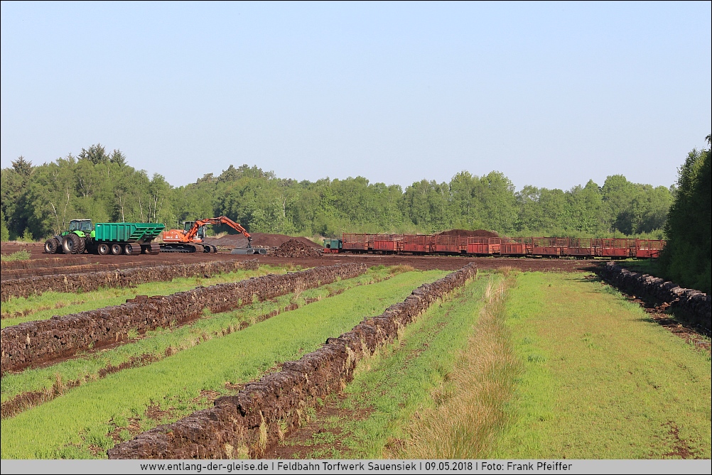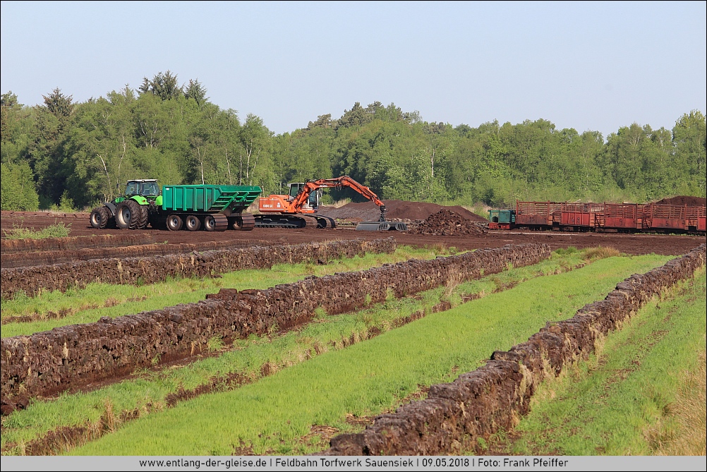 Wiegersen ampelgesichert überquert. Zum Werk in Sauensiek gehört auch eine Torfabbaustelle bei Hatzte direkt an der Autobahn Hamburg - Bremen. Hier wird seit vielen Jahren nur sehr sporadisch und manchmal über viele Monate gar kein Torf abgebaut. Ist Betrieb, wird das Material per Feldbahn zu einer Halde gefahren, von wo aus Lkw den Weitertransport zum Werk nach Sauensiek übernehmen. Hinweise: Alle kleinen Bilder können durch Anklicken vergrößert werden. Die Aufnahmen entstanden von öffentlich zugänglich Stellen bzw. von Punkten nur wenige Meter davon entfernt. |