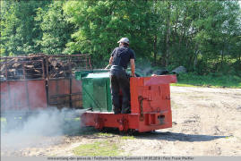 beladenen Zug nähert. 1.17 Zeit zum Fotografieren blieb genug, denn die letze Lore war entgleist, was der aufmerksame Fahrer gleich bemerkte. Nach dem routinierten, aber körperlich anstrengendem Eingleisen geht es nun weiter. 1.18 Ein lezter Blick auf Diema 2645/1963, die hier ohne Personal auf die Weiterfahrt wartet. Zunächst muss jedoch der gesamte Zug auf mögliche Entgleisungen geprüft werden. |