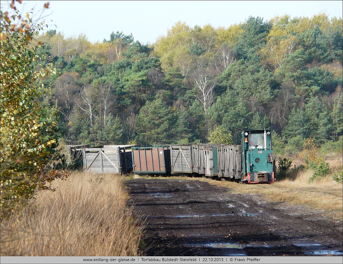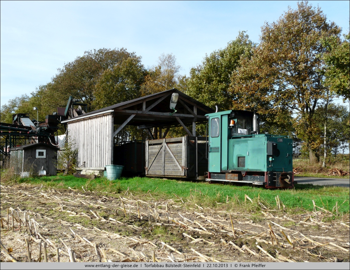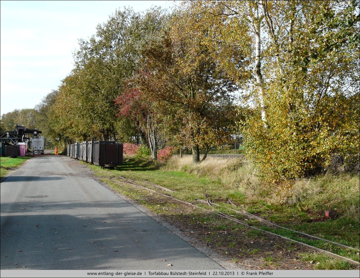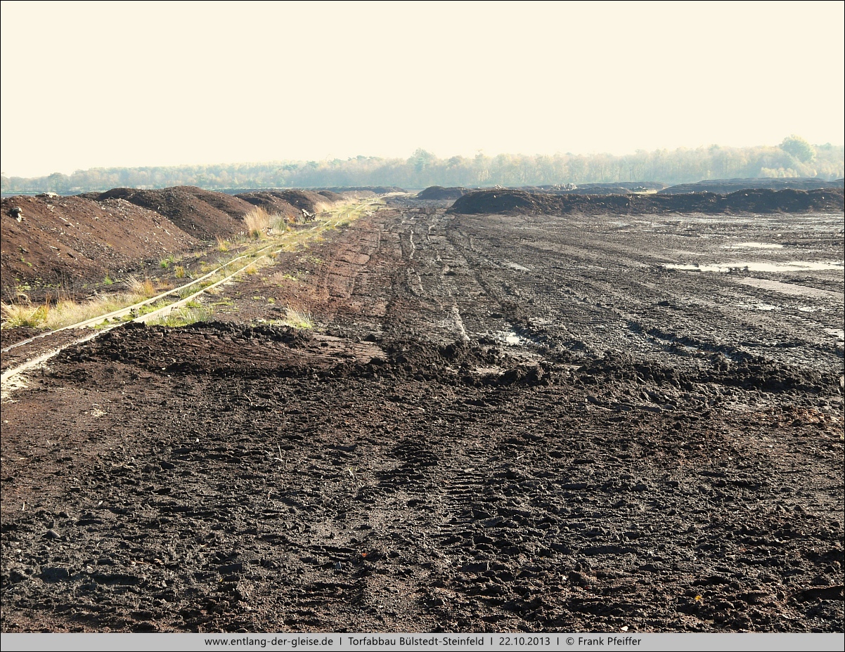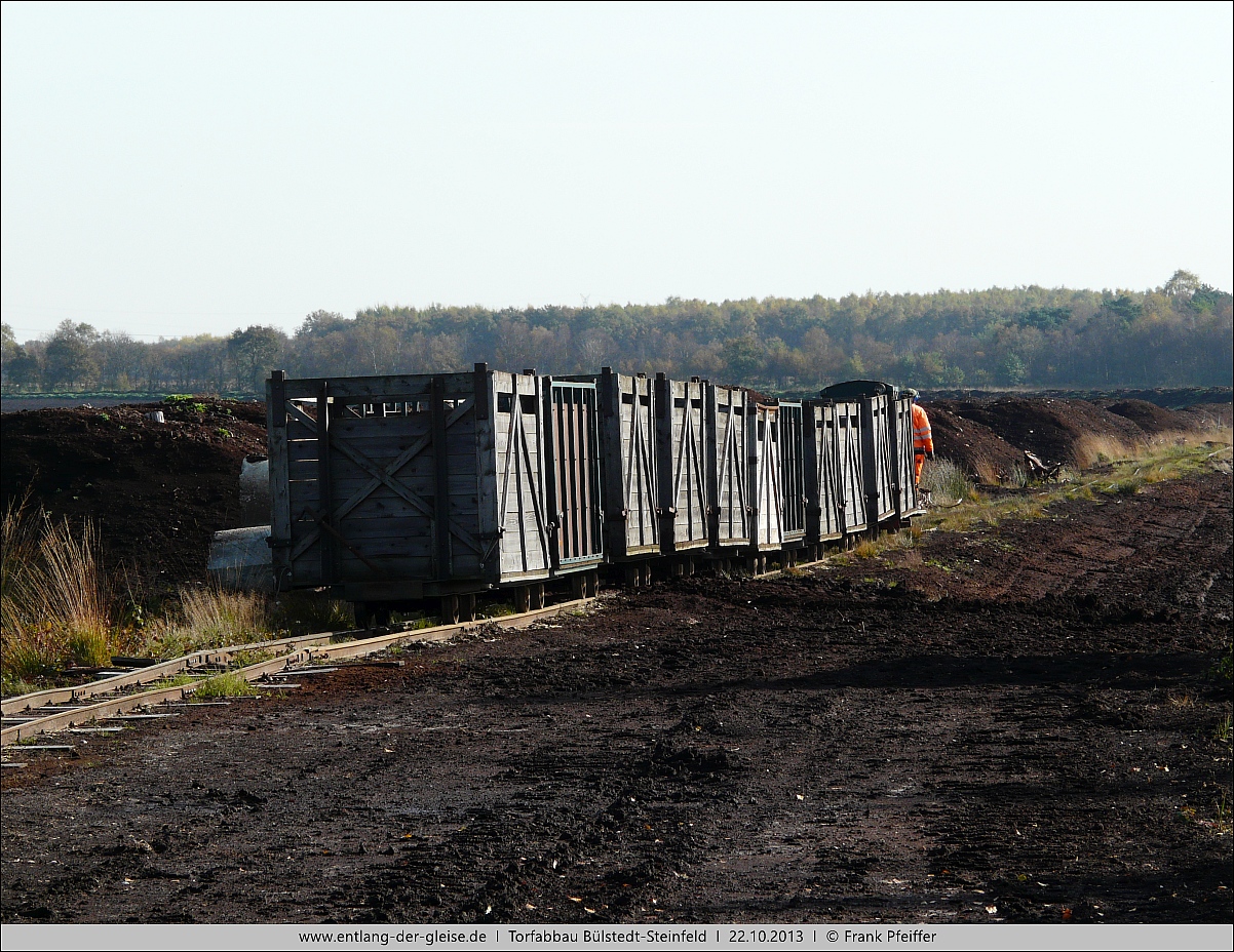 | Im "Goldenen Oktober", der an diesem Tag seinem Namen alle Ehre machte, wurde der Betrieb in Steinfeld erstmals besucht. Dank einer Genehmigung konnte auch das Werkstattgelände sowie die Strecke ins Moor begangen werden, was einige Kilometer Fußweg bedeutete. |