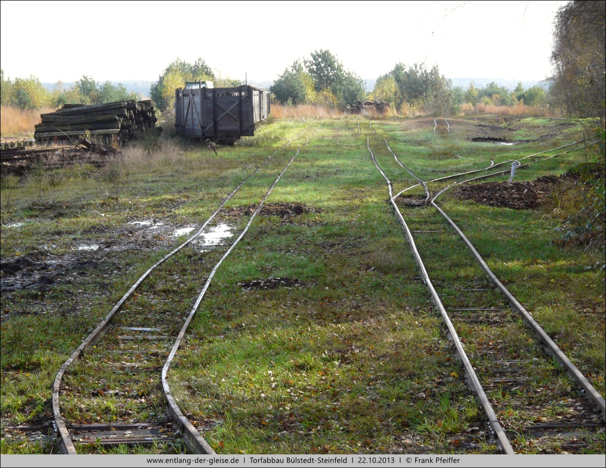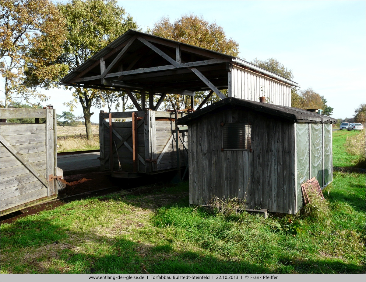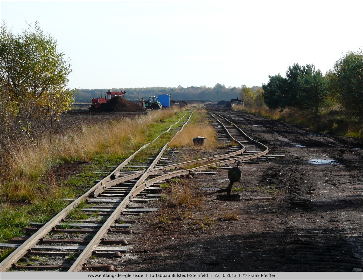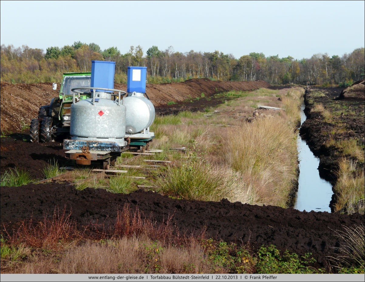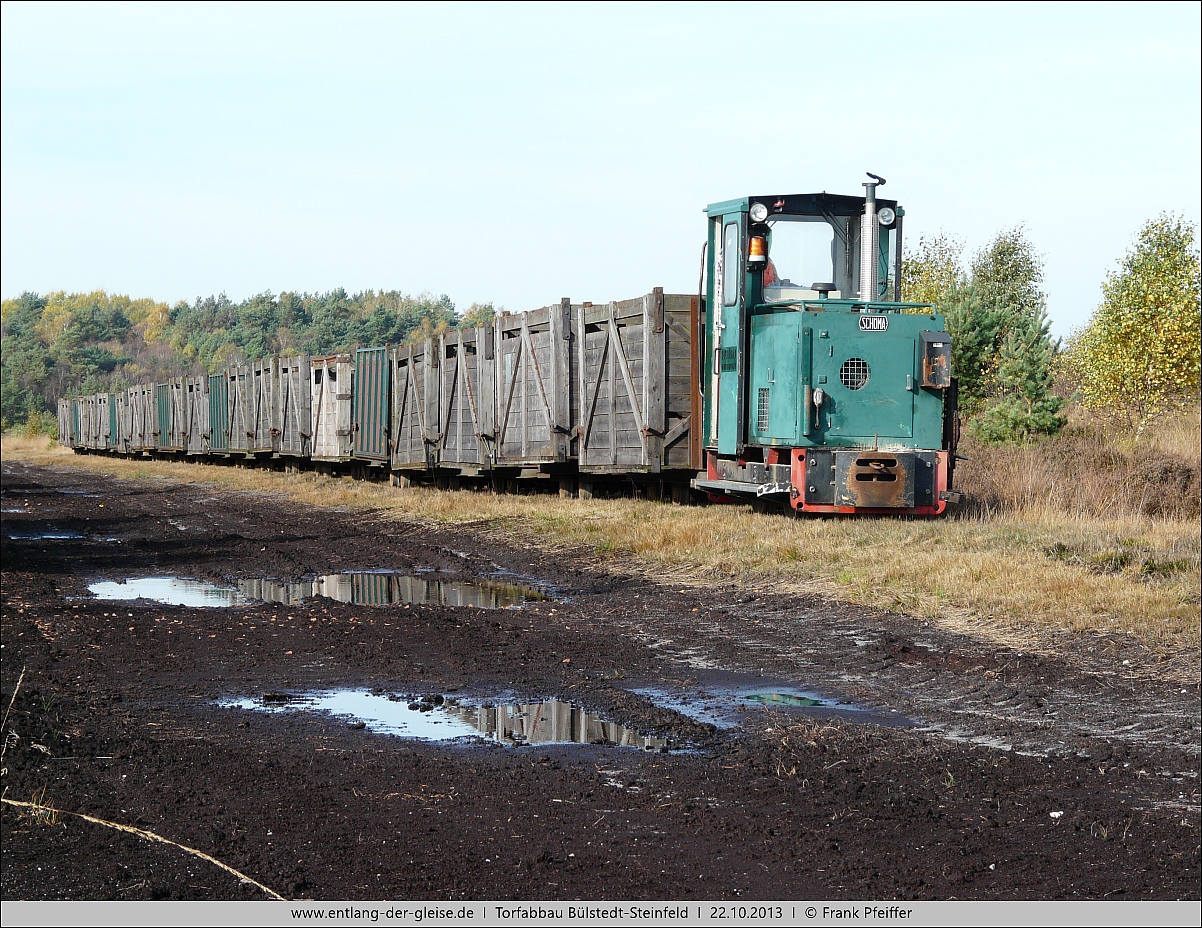 | Im "Goldenen Oktober", der an diesem Tag seinem Namen alle Ehre machte, wurde der Betrieb in Steinfeld erstmals besucht. Dank einer Genehmigung konnte auch das Werkstattgelände sowie die Strecke ins Moor begangen werden, was einige Kilometer Fußweg bedeutete. |