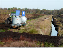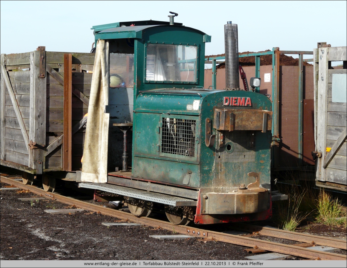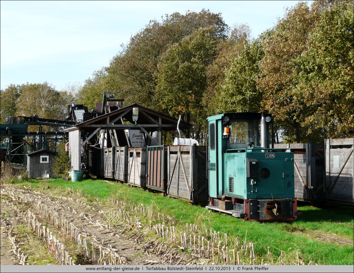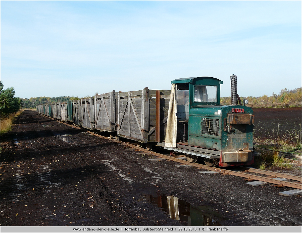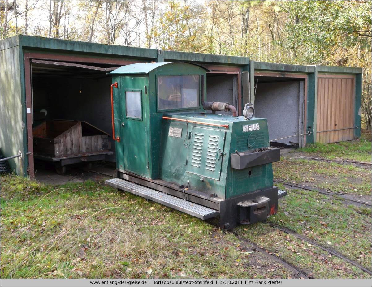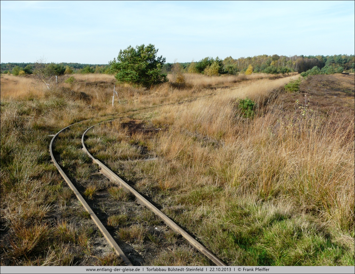 | Im "Goldenen Oktober", der an diesem Tag seinem Namen alle Ehre machte, wurde der Betrieb in Steinfeld erstmals besucht. Dank einer Genehmigung konnte auch das Werkstattgelände sowie die Strecke ins Moor begangen werden, was einige Kilometer Fußweg bedeutete. |