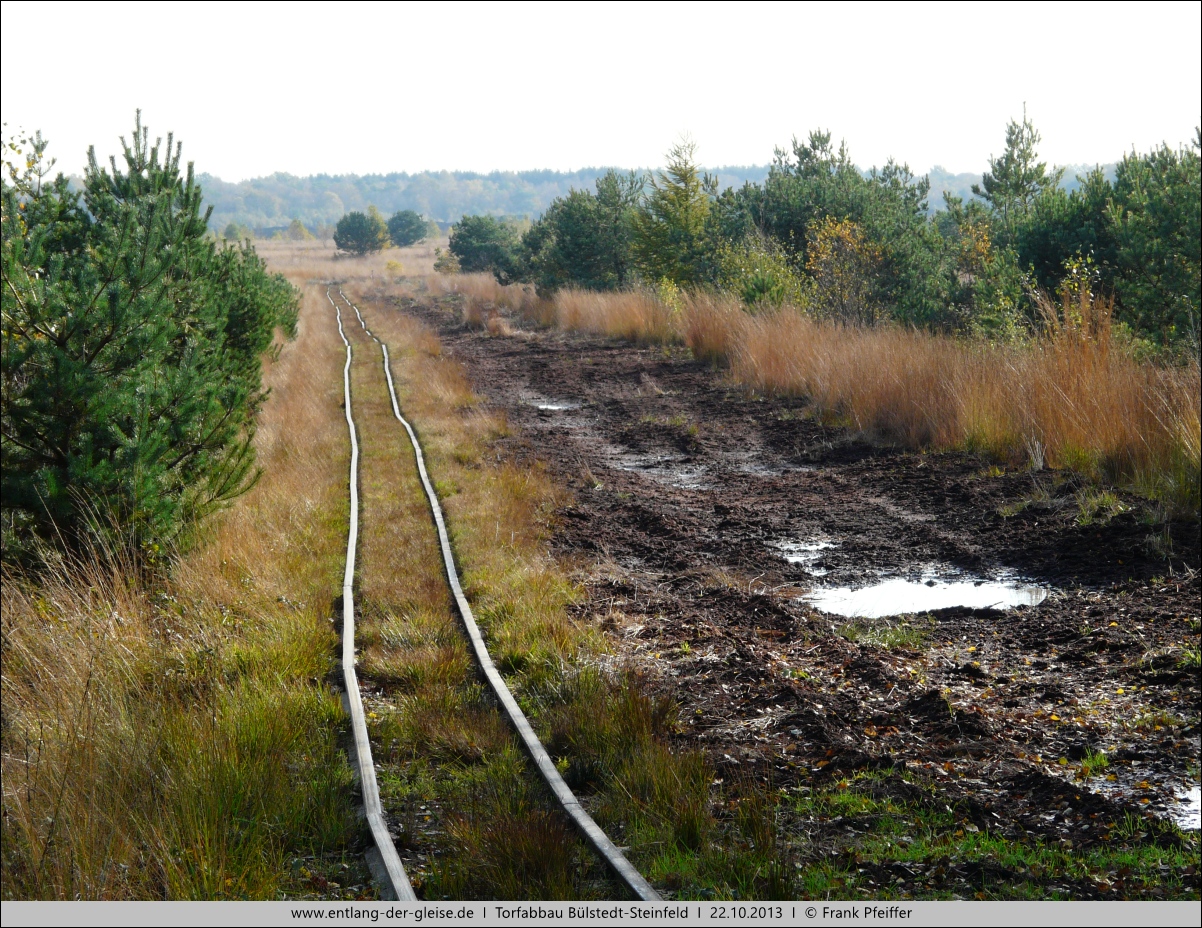 Zustand. 1.15 Von der Werkstatt aus führte die Strecke ein ganzes Stück durch stillgelegte Torfflächen. Man erkennt, dass hier schweres Schienenmaterial verlegt worden war. |