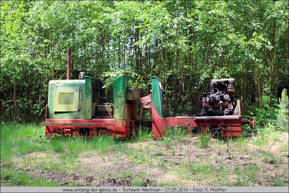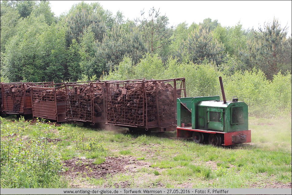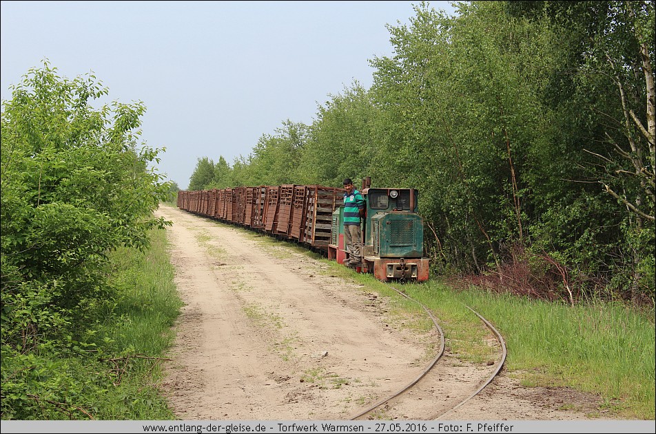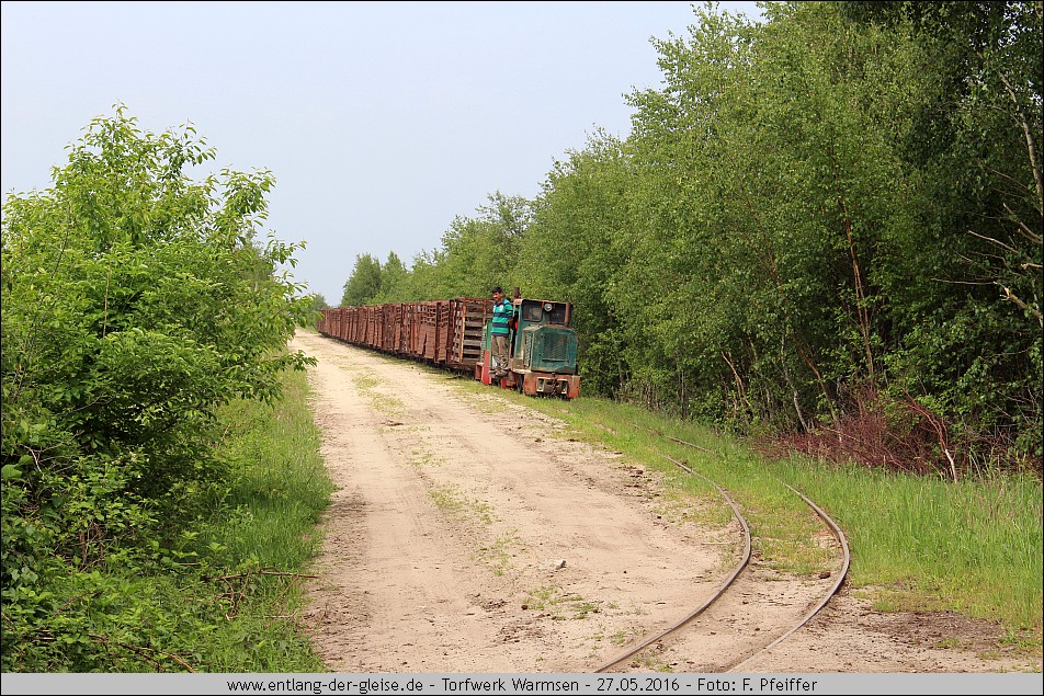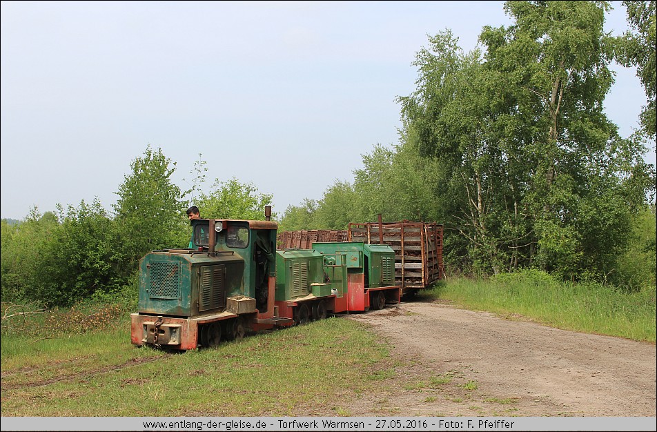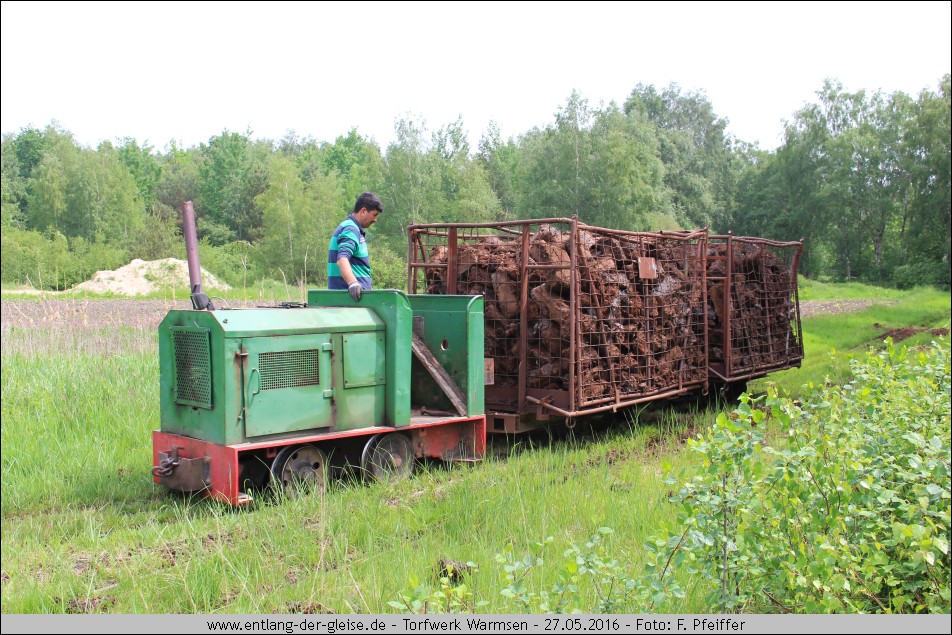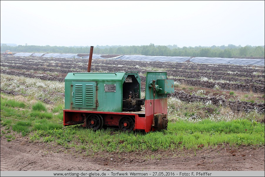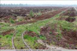 Freitag, der 27. Mai 2016. Im Uchter Moor wird gearbeitet. Beim Torfwerk Warmsen ist allerdings nur ein Zug zu erwarten, der wie üblich mit mehreren Loks befördert wird. So bleibt noch Zeit, einige der Dämme durch das Moor entlang zu spazieren und durch Zufall auch auf eine einzelne Lok zu treffen. Das freundliche Personal ermöglichte auch das Betreten des Torfwerks, wofür ihm auch an dieser Stelle herzlich gedankt sei. |