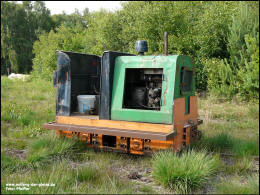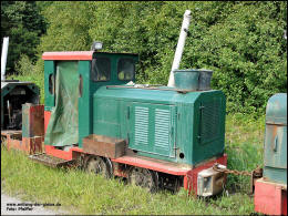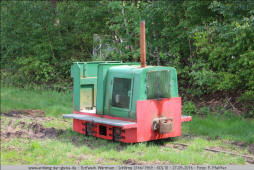 den nächsten Morgen. 1.2 Beim Blick in die weitläufigen und sehr grünen Anlagen des Torfbahnhofs entdeckt man auch eine Diema DS 12 mit Spitzdach. Es handelt sich um die bereits 1951 gebaute DS mit der Fabriknummer 1423. 1.3 Am Ende der Gleise jenseits der Entlade-Halle steht mit der Diema 2731/1964 die leistungsstärkste Lok. Es handelt sich um eine DS 28 mit 28 PS und immerhin 4,3 t Gewicht. |