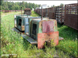 vom Typ KDL-10 im Werk bereit. 2.17 Diese beiden Maschinen sind die Stammloks an der Entladung im Torfwerk. Links die schöne Bullaugen-Diema 1654/1954 vom Typ DS 12, und rechts die Diema 2688/1964, eine DL 8. 2.18 Etwas abseits warten diese beiden auf ihre Zukunft. Rechts die unvollständige Schöma 2240/1959, eine KDL 8 und links die noch komplette Schöma 3257/1970, die dem Typ KDL 10 angehört. |