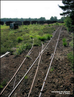 Hintergrund wird Torf verladen und gleich wird sich auch eine Lok auf