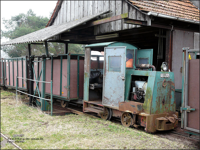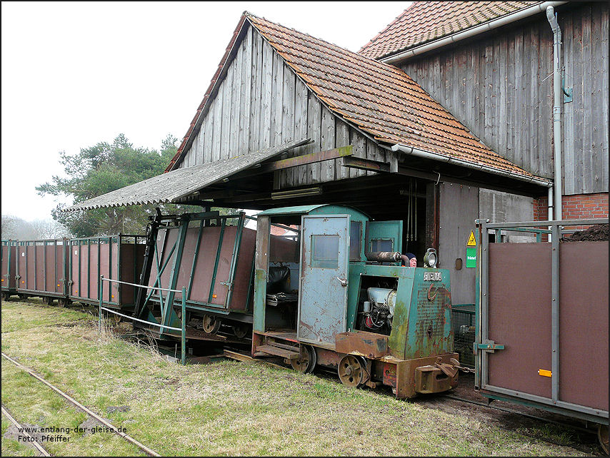 16 63 Jahre alt ist Lok 14 im März 2011. Und noch immer ist die Trapezhauben-Diema mit ihren Bullaugen-Fenstern nicht zu alt für den Torfverkehr. |