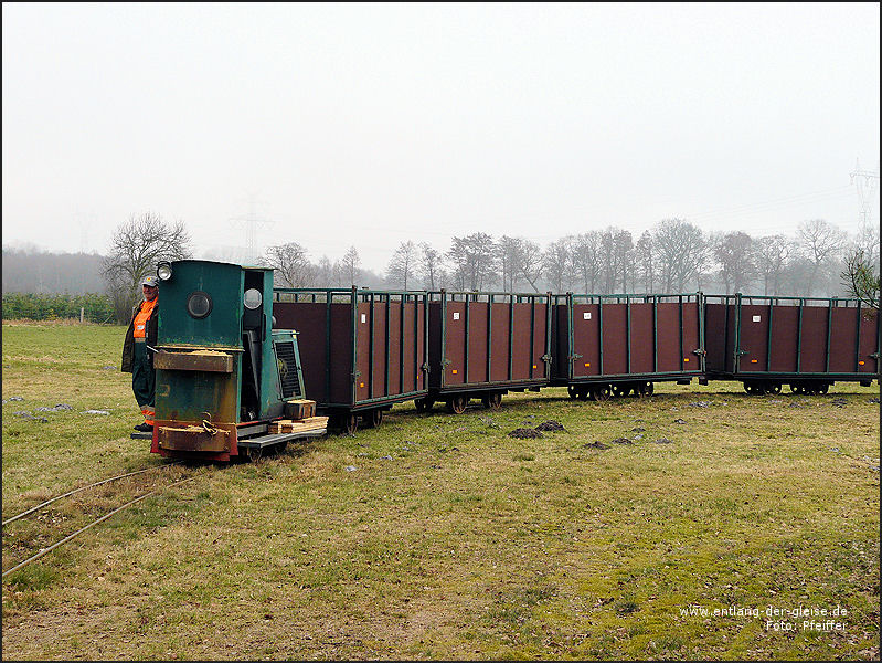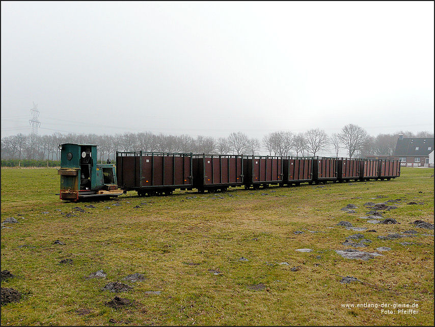 direkt in Lastzüge umgeladen. Gewöhnlich waren vier Loks vorhanden, von denen zwei die Züge zwischen Abbaustelle und Werk beförderten, während eine dritte Lok an der Entladung rangierte. Die vierte Maschine dient als Reserve. Gelegentlich wurden die Lokomotiven mit dem Stammwerk in Gnarrenburg ausgetauscht. Das Werk wurde am 24. März 2011 besucht, als der Morgennebel nur sehr zögerlich aufriss. Wie immer, wurde auch hier beim Betriebsleiter um Erlaubnis zum Betreten der Flächen und zum Fotografieren gebeten. Das bereits im kommenden Jahr kein Betrieb mehr stattfinden würde, ahnte damals noch niemand. Betriebseinstellung Anfang 2012 Eigentumsverhältnisse bis 1987: Torfwerk Ahrens 1987 bis 2004: Friedrich Meiners 2004 bis 2013: Compo (Torf- und Humuswerk Gnarrenburg GmbH) Besuchtstermin 24.03.2011 Hinweis Die Bilder 2 bis 22 können durch Anklicken vergrößert werden. |
