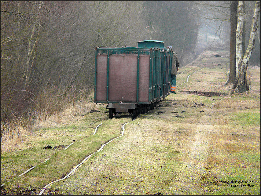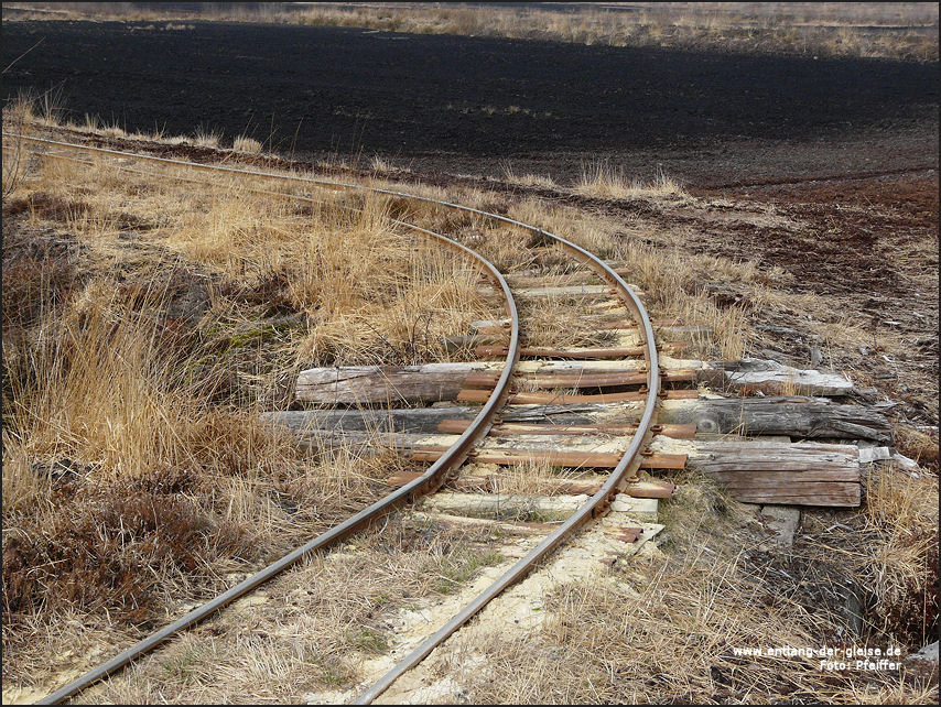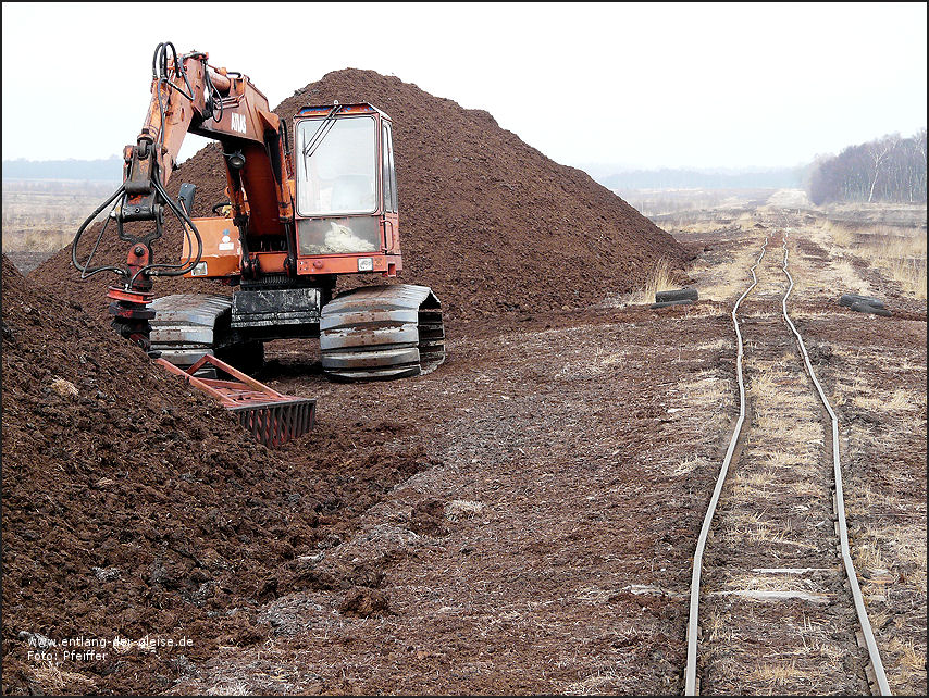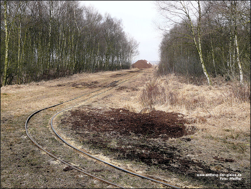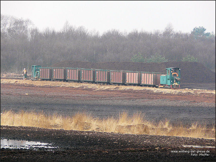 die große Schleife. 13 Da fährt er hin: Etwa einen Kilometer lang ist die Strecke vom Torfwerk zum Moor, wo sie sich in zwei Äste aufteilt. |