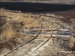 auf der Strecke zum Abbaugebiet. 18 19 Typisch Feldbahn: Im Torfmoor liegen die Gleise selten in exakter Ausrichtung. Manches erscheint allerdings durch das Teleobjektiv noch dramatischer zu sein, als es in der Realität ist. |