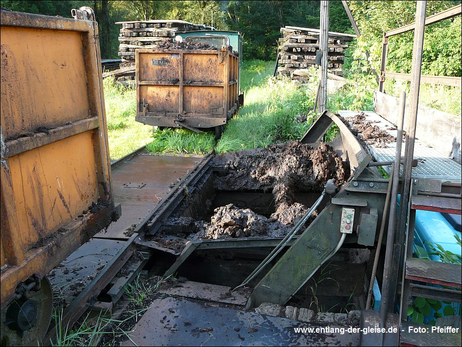 Entladung. Heute wird zweimal mit je drei Loren gefahren, das