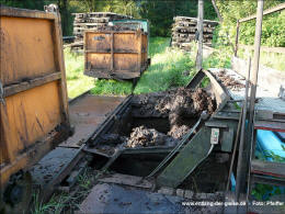 hier einzeln über einen Hydraulikstempel gekippt, die Moorerde