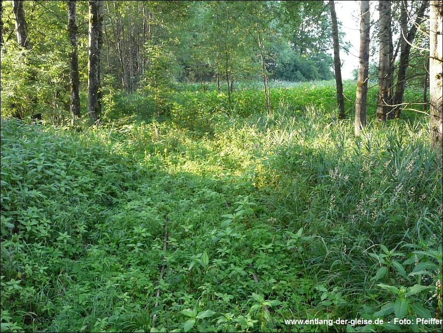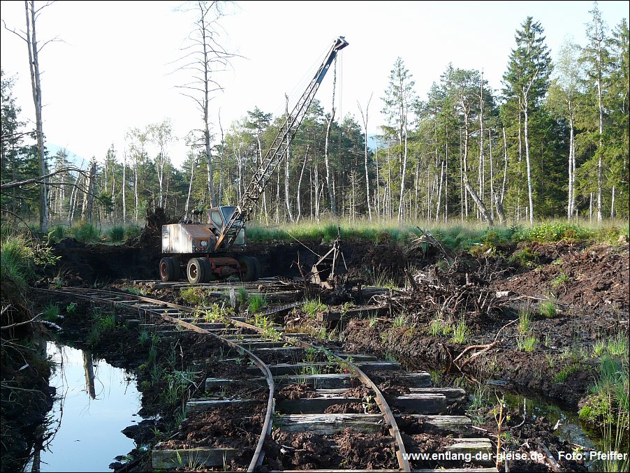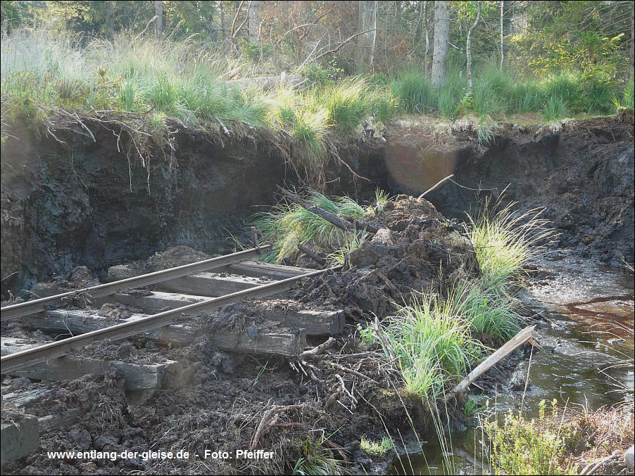 Abbaustelle endet das Gleis nach einem Bogen im Morast. Ein