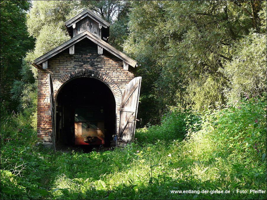 Lokschuppen, in dem heute die drei vorhandenen Dieselloks Platz