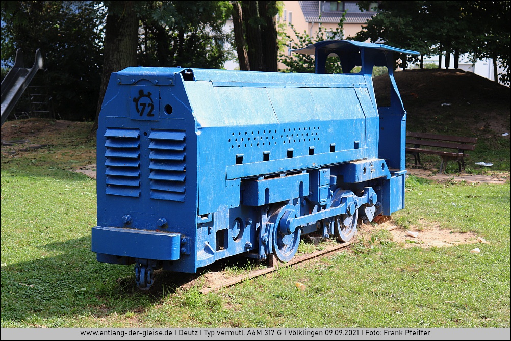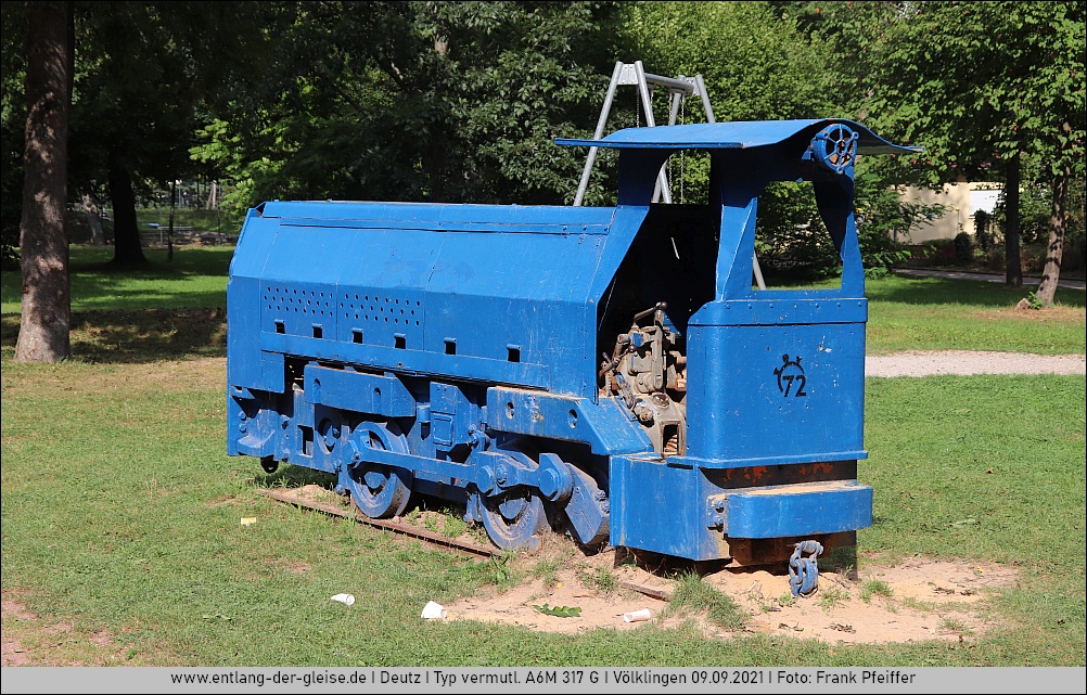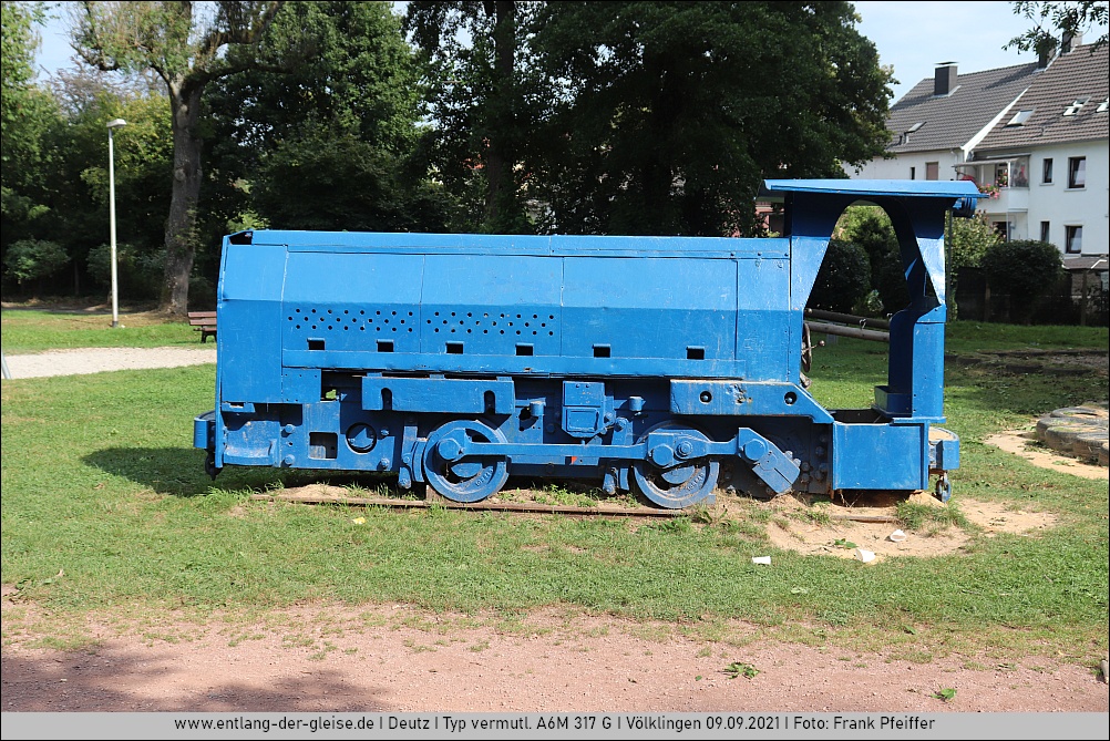 Völklingen-Geislautern steht diese Grubenlok vom Typ A6M 317